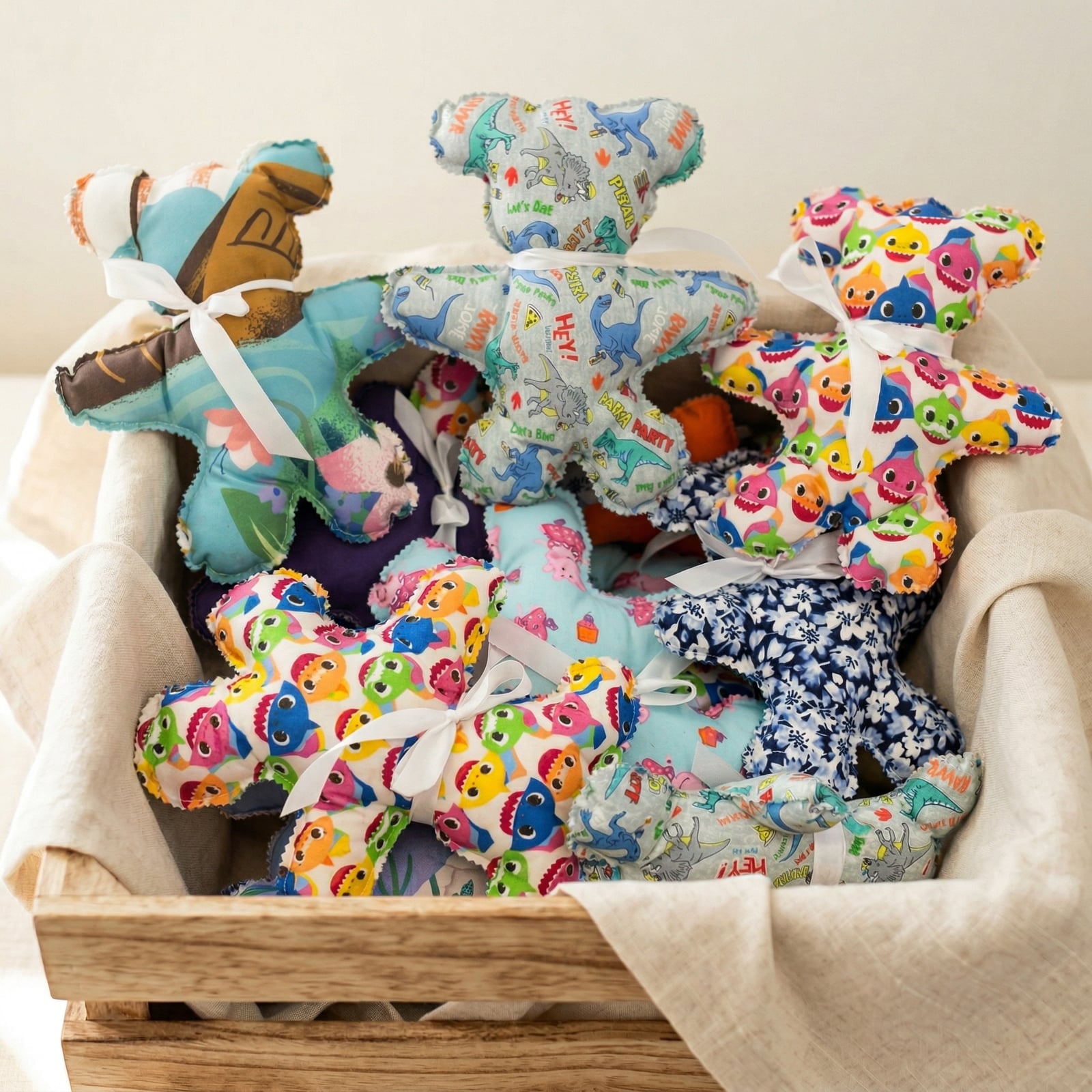 Stitched Memory← HomeAlongside the keepsake bears we build from family clothing, Katie makes small comfort bears from bright printed fabric — to hand out at hospitals, shelters, first-responder visits, and anywhere a kid could use something soft to hold.